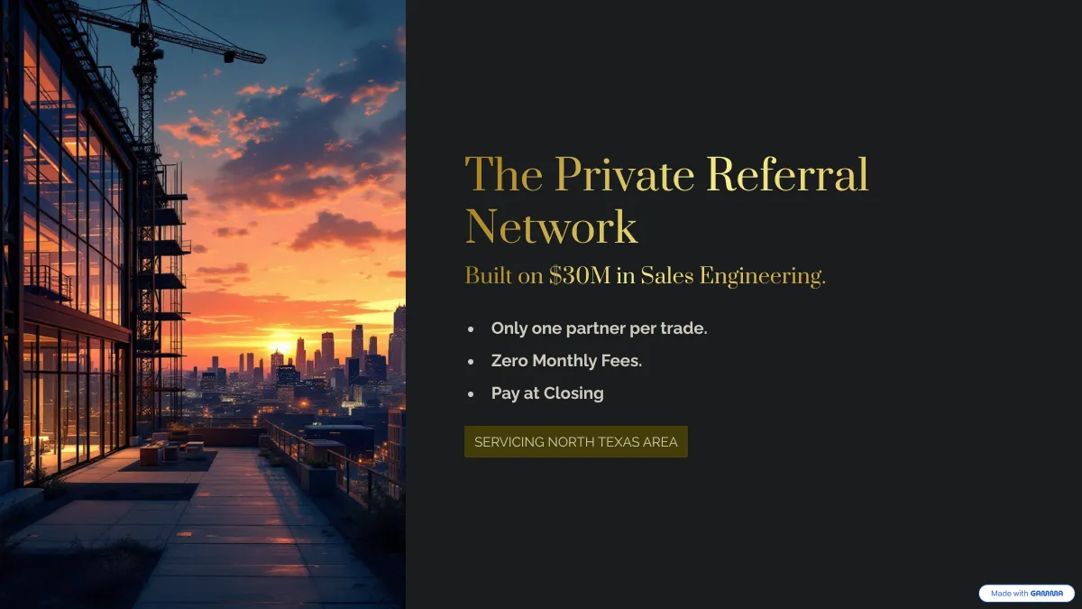 We aren’t a lead site. We are a performance-based partnership. We build the tech, you build the project. Engineering private referrals for one roofer, one remodeler, and one builder in North Texas. Watch the training to secure your territory.